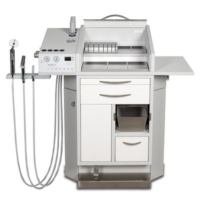 This unit was specially designed for small to medium-sized treatment rooms to ensure a smooth workflow in such rooms. This treatment unit offers the complete range of functions of large treatment units (e.g. MODULA Europa). Suction with manual or automatic secretion jar emptying, up to four cold light sources, compressed air, ear rinsing device and many other equipment options are also available in this unit.
