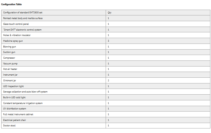 ENT2800 is the most advanced otolaryngology diagnosis and treatment system (ENT unit set/ENT workstation/ENT opd system) we have developed. Thanks to modular design, the main unit and the instrument cabinet are separate, which saves a lot of space, and also makes it more flexible and convenient to use. On the one hand, ENT2800 integrates almost all common otolaryngology diagnostic functions, such as medicine spray, suction, ear irrigation, disinfection, heating, etc. On the other, it also has good expansibility. We have many optional equipment to work with it, like operating microscope, endoscope image system, etc. Therefore, our clients are able to customized his own ENT unit system base on actual needs, by chosen the right options.