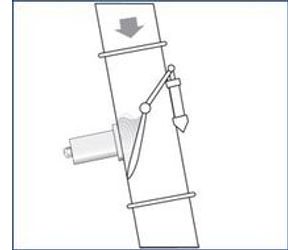 To be able to measure in free fall pipes or inclined pipes (chutes) with the M-Sens 2, it is possible to gather material in front of the probe in the short term, for the duration the measurement, with a catching mechanism. After the measurement, the flap will open again and allows the gathered material to continue to drop. The measuring process can be permanently repeated in short or long intervals according to requirements.