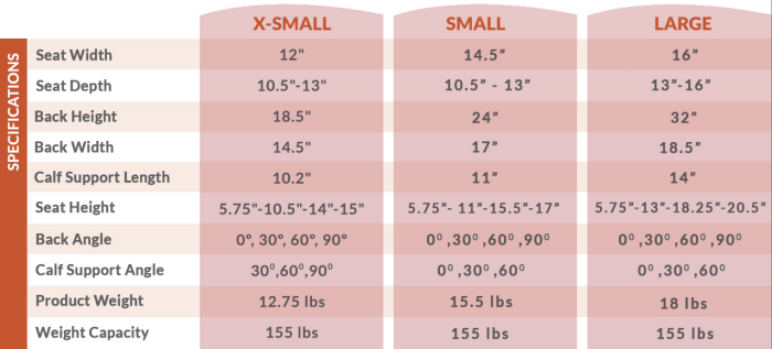 - Angle adjustable back, seat and calf support can be configured for indiuvidual requirement