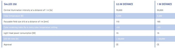 The Sim.LED 250, with one Sim.POD and a total of three LEDs, is the ideal light for your individual examination needs since it offers an optimal light field. Thanks to its flexibility and optimal downsizing, the Sim.LED 250 fits well with every type of use, in every place of examination.