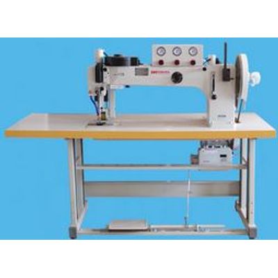 This specialized sail making machine gives large working space underarm eliminates the effort and time needed to fold and roll wide sections of sailcloth and cover fabrics during sewing operations; This machine is recognized as the ultimate sail maker sewing machine currently available, it is capable of powering its needle through 20mm of Dacron, Kevlar, Webbing, Canvas and leather; Extremely strong needle penetration force, can easily sew sturdy webbing reinforcement and extra heavy sail corner patches; The large shuttle hook and bobbin capacity reduces the number of bobbin changes and offer high efficiency in sewing sails, tents and tarpaulins, using extra thick thread up to size V277; With 4 Cams for straight stitch, 1-step (2-points), 2-step (3-points), 3-step (4-points) zigzag, cover all demands of modern sail making industry; Standard supplied with heavy duty top and bottom feed puller, which is perfect for sail makers; This robust and reliable sail sewing machine is designed for mass-production sail making business (similar with Durkopp Adler 366-76-12-HM).