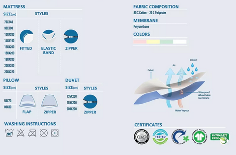 Caress fitted sheet is a breathable and waterproof terry mattress protector designed to provide a healthy and comfortable sleep for you. Caress will protect your mattress against dustmites helping to keep you healthy and your bed dry at all times.