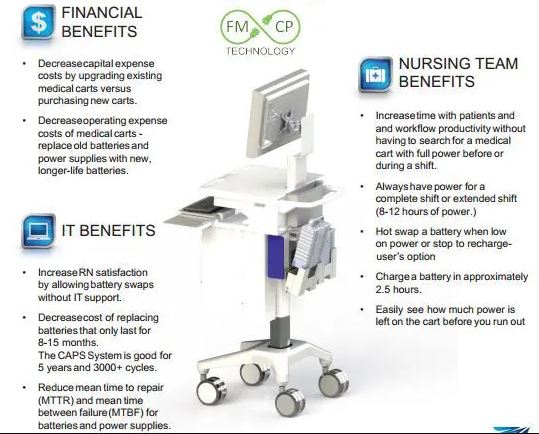 Flexible Mobile Cart Power Technology provides alternatives to the frequent problems brought on by older cart battery designs. Nurses have a hard enough time with the exacting requirements of their daily rounds. Even though the mobile workstations that have already are helpful, they bring technical problems. Problems that can usually be traced back to the on-board battery.