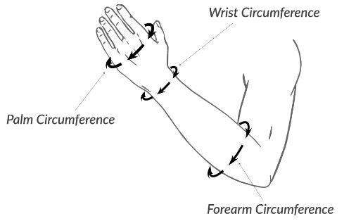 - Step – 1 : Measure circumference of wrist, Palm and Forearm and choose size