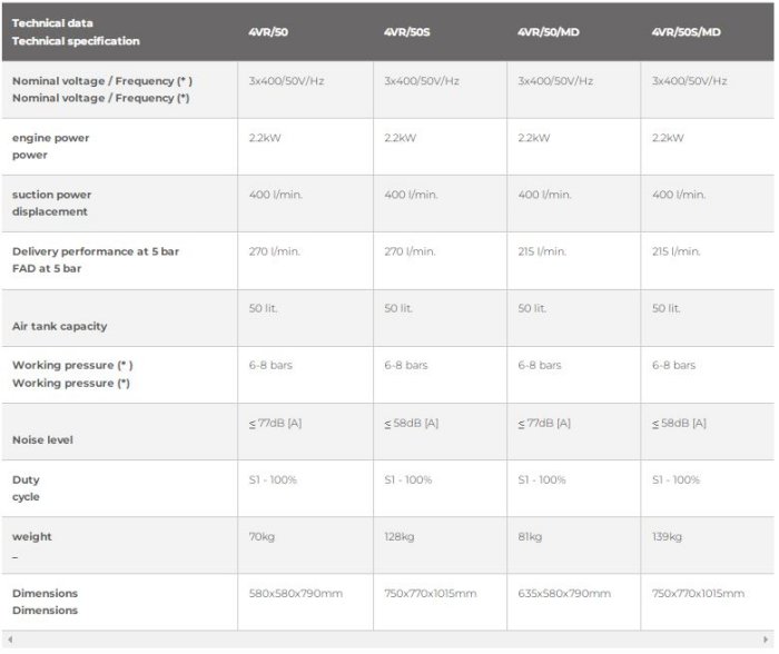 - DK50 4VR/50/MD - without sound insulation box, with membrane dryer