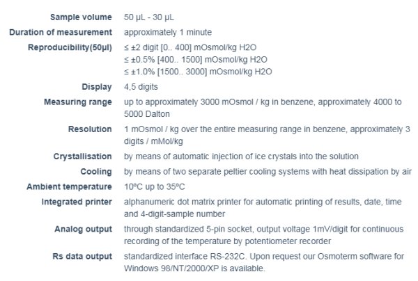 Routine measurements in medical applications as well as measurements in industry and research.The Osmomat 010 determines mol masses in benzene solutions and the total osmolality of aqueous solutions. Small sample volumes and short measuring times allow extreme measuring requirements and serial measurements.