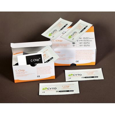 Manual microscopic cell counting in a Fuchs-Rosenthal (FR) chamber has been the gold standard for quantification of leukocytes in cerebrospinal fluid (CSF). An excellent correlation between cell counts obtained with the C-Chip chamber and FR chamber was observed. Determination of leukocyte counts in cerebrospinal fluid with a disposable plastic hemocytometer. C-Chip DHC-F01 eliminates the risk of exposure to potentially infectious materials and the risk of improper fitting of the chamber and the cover slip, which improves the precision and repeatability.