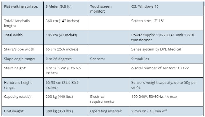 The benefits of real-time gait biofeedback in rehabilitation has already been proven to encourage significant and clinically relevant improvements (Gelder, 2017; Genthe, 2018). The DST Triple Sense takes these benefits to the next level by providing real-time feedback on patient’s performance in all three functionalities: stairs, slope, and parallel bars.