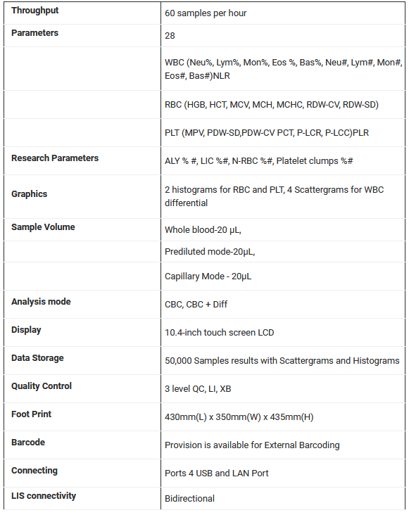 Dynacount 5D is a 5 part hematology analyzer offering flag information for better diagnosis and providing automatic monitoring of reagent status.Smart maintenance with one click for troubleshooting. It is an ideal choice for labs that need to process a high volume of tests quickly and efficiently.