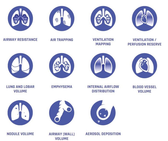 Traditional lung function measurements, such as FEV1 or FVC, only provide meaningful information about the condition of the entire lung and do not indicate where the exhaled air is coming from. Regional information is often crucial to understand the pathophysiology of the individual patient and to give guidance for optimal treatment. Functional Respiratory Imaging (FRI) is a clinically meaningful and non-invasive measurement of the patient-specific respiratory system. A set of distinct biomarkers analyzes exposure, structure and function of the lungs and airways in any respiratory disease.