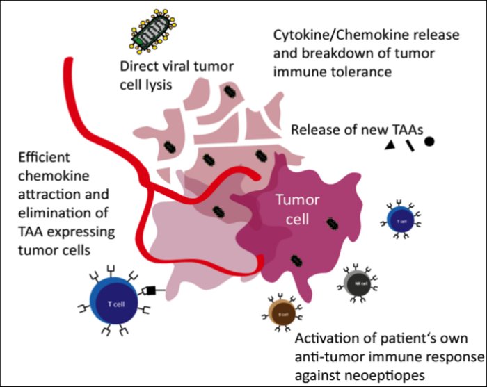Oncolytic viruses have been identified as highly promising candidates for combination immunotherapies, because of their potential to induce immune cell infiltration and breakdown of the tumor immune tolerance. Additionally, they activate a response against neoepitopes that are released by an immunogenic cell death of infected tumor cells. The FUSIX technology offers a potent and flexible platform for combination approaches with immune checkpoint inhibitors, as well as adoptive cell transfer, including T cells as well as dendritic cells.
