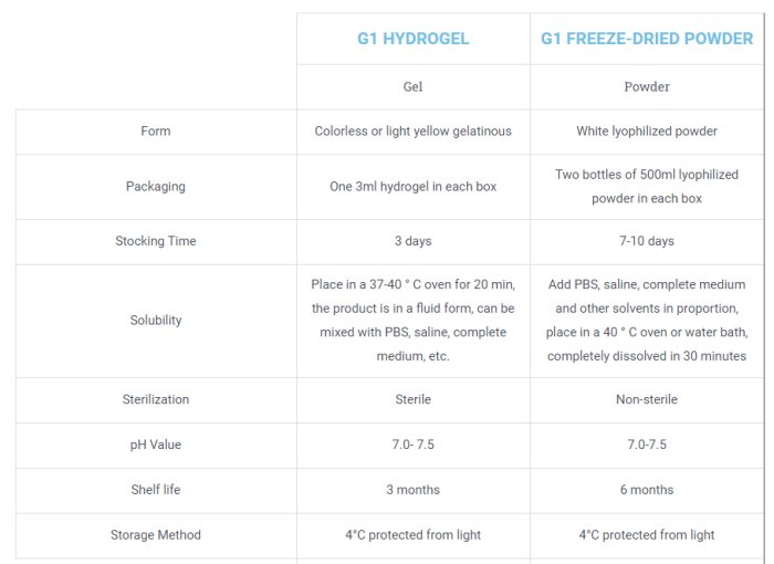 SunP Gel G1 is a bioInk based on methacrylate gelatin (Gel-MA), which retains the temperature-sensitive properties of gelatin and can be mixed with photoinitiators (such as LAP, I2959). It crosslinks under blue light or ultraviolet light, and suitable for most human and animal-derived cells. The product is available in gel and powder form