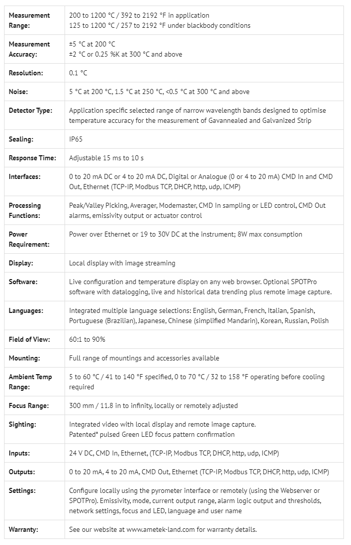 Building on LAND’s extensive application expertise in the steel industry, the SPOT+ GS is designed specifically for temperature measurement in continuous galvanizing lines to help ensure production of high quality products demanded by world leading customers in the automotive industry.
