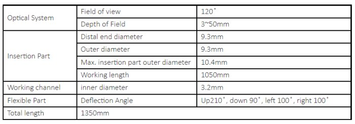 Features: Photo and video recording for statistical research and remote consultation, With external monitor for easy surgical observation and teaching operation, Electronic imaging to enhance the flexibility and insertion performance of the endoscopy, reducing patient pain during the examination, 2.0 megapixel camera to capture more image information, Automatic or manual white balance adjustment to ensure the true reproduction of the image color, Fully waterproof design for full immersion cleaning and disinfection of endoscopes to reduce cross infection, A spare machine is provided during the maintenance period to ensure the product is used continuously