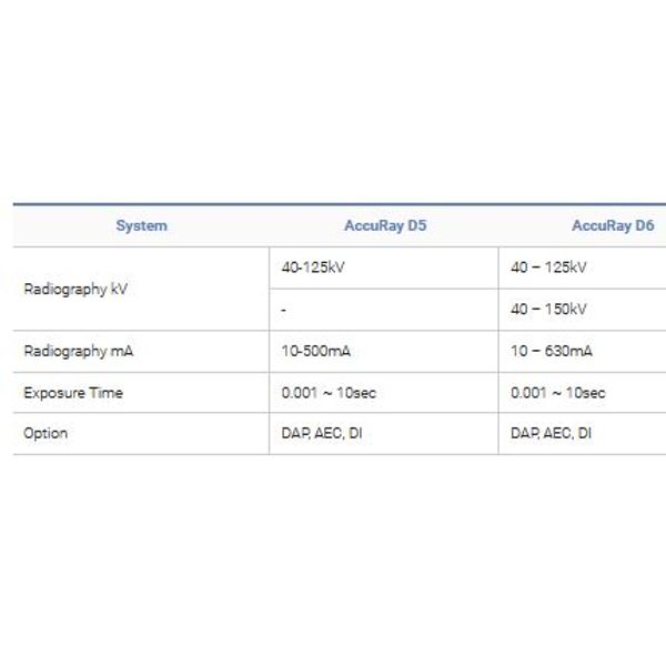 Accuray D5/D6 is general diagnosis X-ray system, it appropriate image is provided accordance with diagnostic object, also this system can be combined with various configuration by user’s purpose.