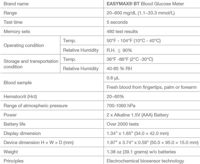 EasyMax - Model BT - Bluetooth Connectivity -Glucose Meter