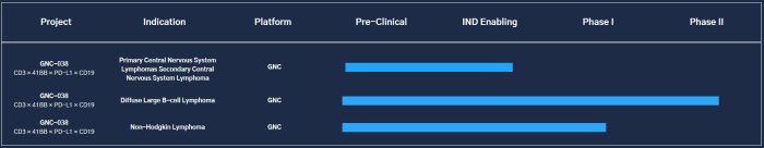 GNC-038 is currently being evaluated as a single agent in clinical trials enrolling patients with a variety of CD19+ hematopoietic cancer indications.
