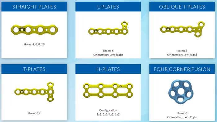These low-profile stabilization plates for small bones are designed to provide robust fixation while reducing implant prominence. The wide variety of plates can treat numerous fracture patterns of the forearm, wrist, and hand. Common uses include: Fractures of metacarpals, metatarsals, and phalanges, Metaphyseal fractures of the radius and ulna, Metacarpophalangeal (MCP) fusions of the thumb and four corner fusions
