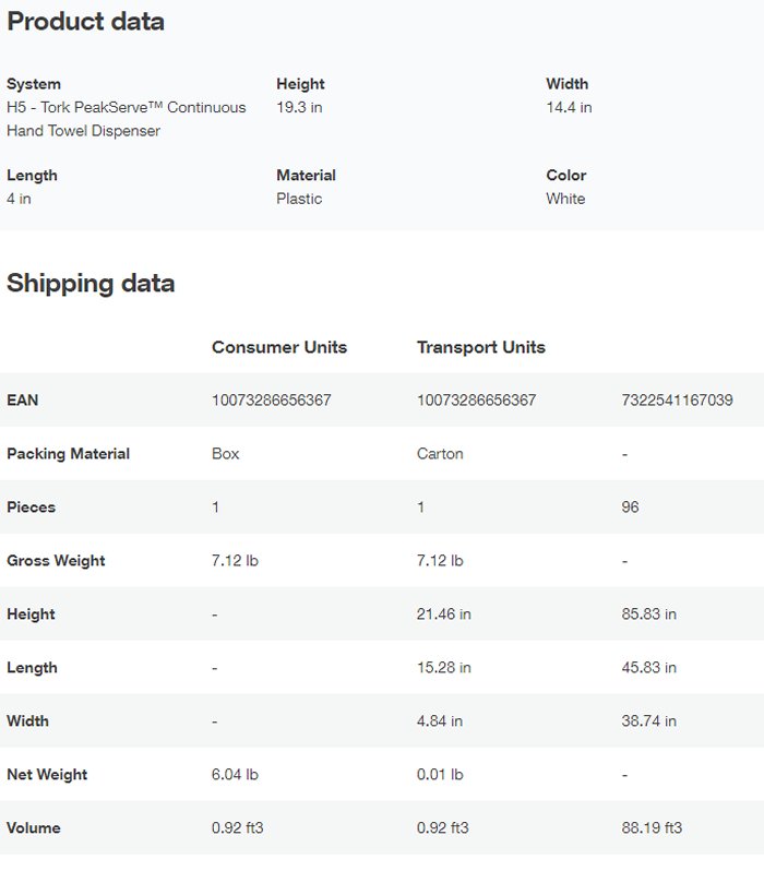 Tork - Model PeakServe® Mini -Hand Towel Dispenser White