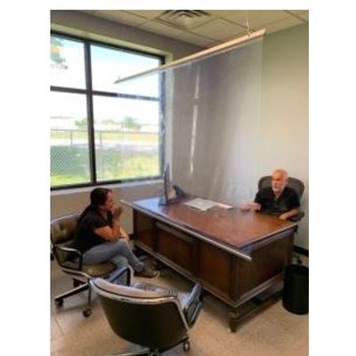 Keep your Employees Socially Distanced and Safe from Viruses & Airborne Particulates while Keeping Guests Safe & Secure, while Dining, Working or Playing. Steel Guard’s Personal Safety Partition is designed to protect employees, and customers from airborne, virus-containing droplets caused by sneezing, speaking, or coughing. These Clear Hanging Sneeze Guards protect those with face-to-face interactions. The Clear Safety Partitions are minimally intrusive and made from Heavy Duty PVC and a Sleek Aluminum Frame.