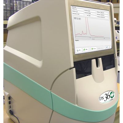 The DS360 uses high pressure cation exchange liquid chromatography in conjunction with gradient elution to separate human hemoglobin subtypes and variants from hemolysed whole blood. The unit will accept whole blood or pre-diluted samples before preparing, incubating and analyzing samples automatically. The separated hemoglobin fractions are monitored by means of absorption of light and the chromatogram obtained is recorded and stored by the internal computer. A software program in the instrument performs the analysis of the chromatogram and generates a results report through any attached USB printer.