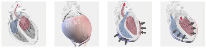 BEAT contains air cushions that gently squeeze the heart, in sync with its natural rhythm.