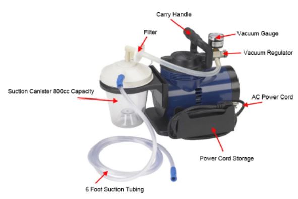 Drive Medical Heavy Duty Suction Machine is portable and lightweight (12.1 lbs). An attached E-Z Grip handle allows easy transport. The power cord wraps around the base for quick storage. It has a filter that is anti-bacterial, which helps prevent contamination. It features an anti-vibration vacuum regulator and gauge setting that comes with oil-less, permanent lubrication. It comes with an overflow protection collection bottle. It is highly reliable and offers superior performance. This Heavy-Duty Suction Machine has vacuum control of 560 mmHg.