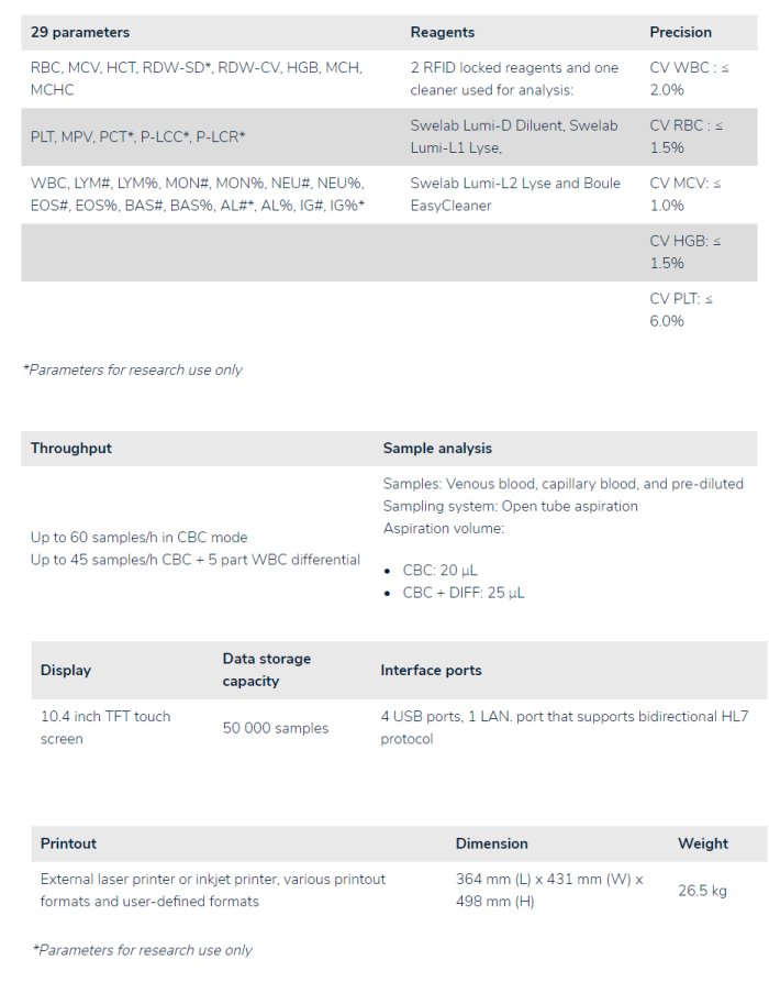 Swelab - Model Lumi -Hematology Analyzer