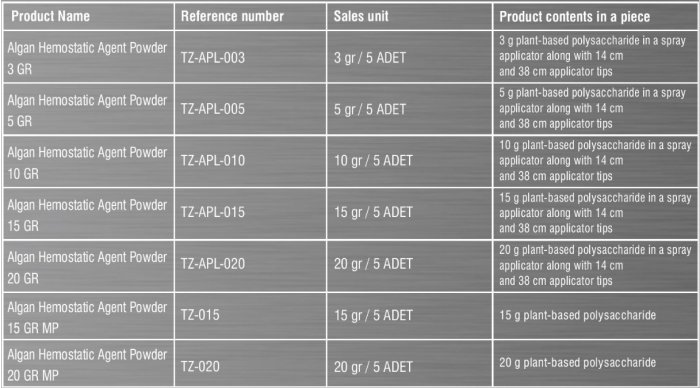 - Algan Hemostat powder granules provided in special durable alloy pouch is applied directly to bleeding areas. Granule hemostatic powder supplied as 15g and 20g in a pouch is directly poured onto the bleeding areas that helps control of bleeding rapidly and effectively in traumatic injuries.
