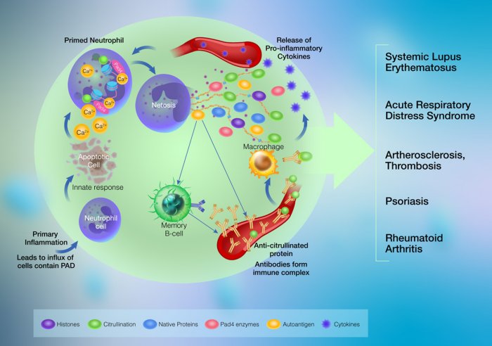 - Histone citrullination and associated NET formation linked to pro-inflammation and disease progression in several autoimmune disorders including RA, psoriasis, thrombosis, fibrosis, SLE etc