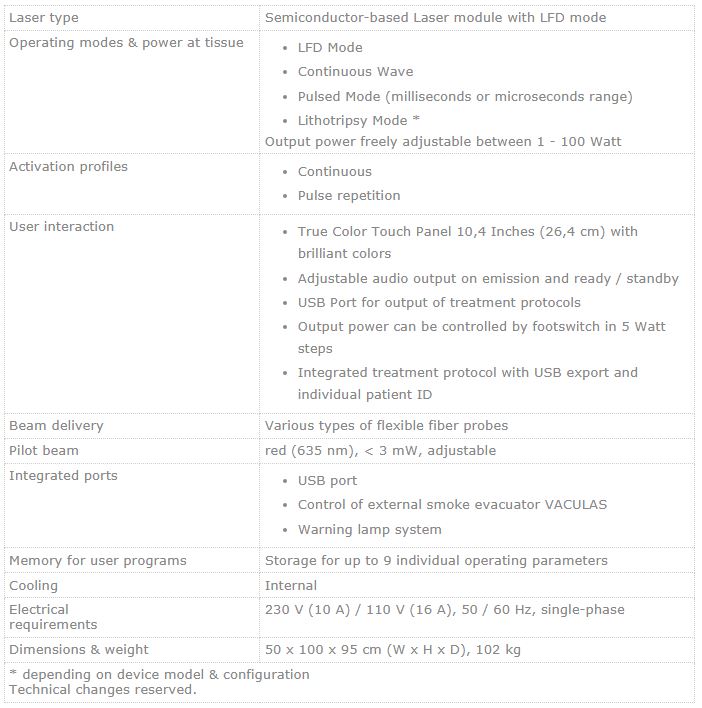 - World`s first high-power laser with LFD (Levelled Field Density) Mode which limits coagulation to 1 mm for clearly reduced collateral damage