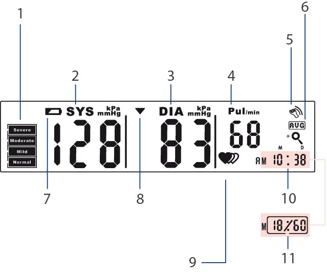 Easy-to-read large display area, Irregular heartbeat indicator, 60 memories, Scratch-proof soft case.