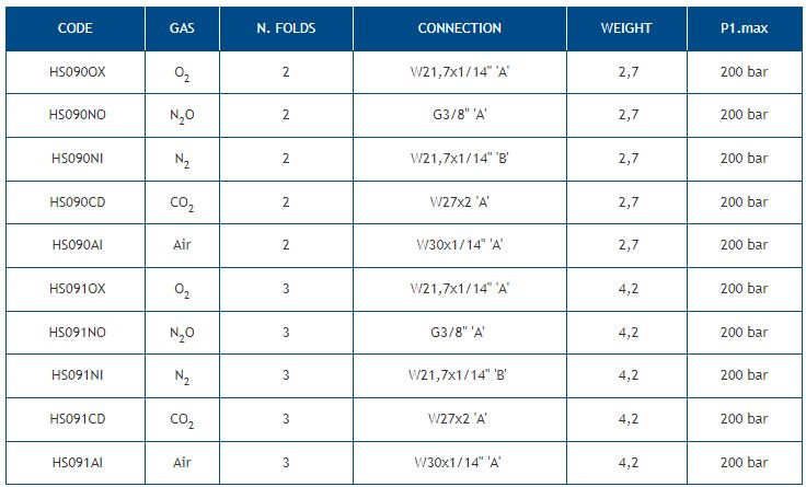 Cylinder connection manifold made with a single brass manifold, with two or three places; specific gas connection; non-return valve built-in in the inlet connection. It is made of materials compatible with the gases and applicable standards in medical gas field. The identification takes place through the indication of the name and/or symbol of the supplied gas and the production batch stamped on the manifold. The inlet and outlet connectors are made of brass with gas specific threads as per table. The wall fixing bracket is in galvanized steel.