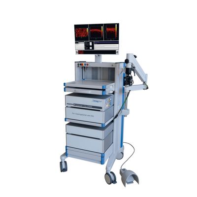 The RSOM Explorer C50 features a mobile cart system with a flexible mechanical arm for user-friendly detector positioning on the skin. Laser safety features such as a foot pedal interlock are integrated to fulfill key requirements of the clinical environment.