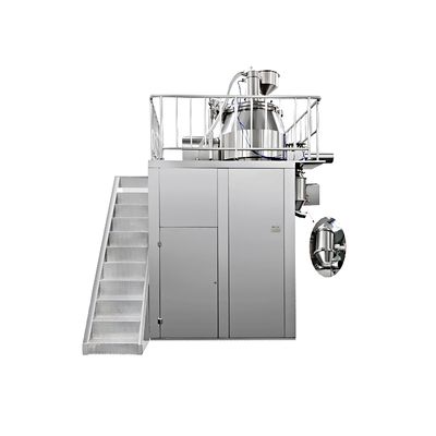The materials feeding into the granulating pot through the vacuum. After the action of centrifugal force of impeller, the pressure liquid supply system injects the adhesive through the spray gun. At the same time, the chopper rotates at a high speed. The materials are bonded into granules in the bowl and discharged to the next process.