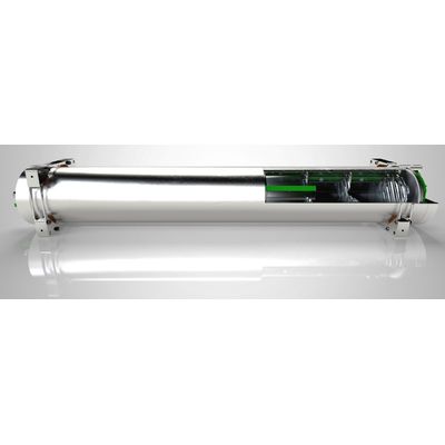 Helium-4 is used as a scintillation medium. Helium-4 (natural helium) has proven to be an excellent choice for a neutron detection medium as it is transparent to its own light and has low electron density, making it insensitive to gamma radiation. A proprietary, large area LiF-based coating inside the detector tube captures neutrons, emitting highly energetic charged particles in the process. The energy of the charged particles is converted into light and detected by SiPM light sensors. On board electronics perform digital pulse shape discrimination to reject gamma-induced events and provide a pulse for every detected neutron. Robustness is achieved by eliminating fragile components such as crystals, photomultiplier tubes and sensitive anode wires.