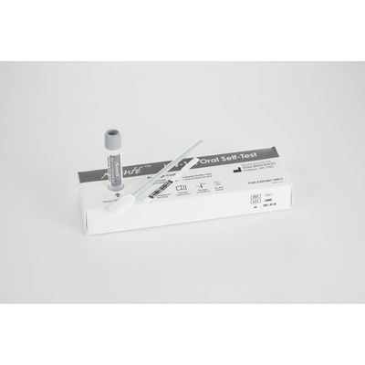 Swipe the included swab along the gums and mix with Sample Buffer. Discard Swab and add Test Strip to begin the test.