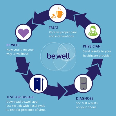 The be.well™ system** is designed to enable testing for infectious diseases at home with results in 30 minutes. The system would come with nasal swabs, disposable cartridges, a handheld analyzer and application program compatible with any mobile device.