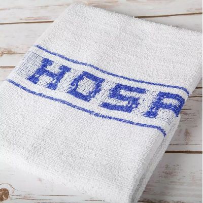 Lightweight Hospital Property interwoven highly absorbent hand towels wash well at hot temperatures and dry quickly. These 100% cotton towels are suitable for laundering by hospital laundries. White towel with blue interwoven “Hospital Property” wording across the middle of the towel. The hand towel measures 48cm x 100cm. Interweave Textiles is one in a small selection of hospital towel suppliers, including supply to the NHS hospitals. You may also be interested in Hospital bath towels and Hospital Bath sheets.