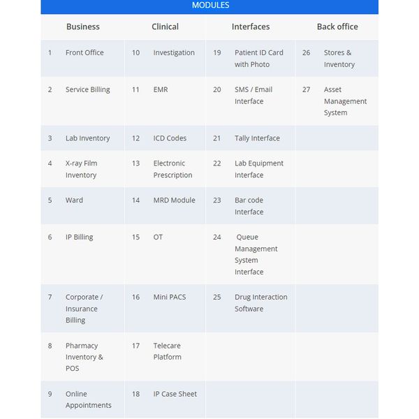 The hospital information system (HIS) plays an important role in simplifying the workflow of hospitals by digitizing the entire operations of a hospital. Hospital information system has mainly 2 parts such as Clinical Modules and Administration modules. The Clinical module of this system is patient centric that deals with patient appointments, registration, billing, medicines, doctors and the treatments, surgeries. The clinical part eases out the tasks for consultants thus doctors spends more time with patients and able to consult more patients as well. Whereas the Administration module of hospital information system (HIS) handles the back office information such as Accounts, Stores, Asset management, Human resource management, Corporate Billing, Insurance billing and so on. This is an important module for the hospital management to keep track of the revenue, outstanding payments, purchases and stocks.