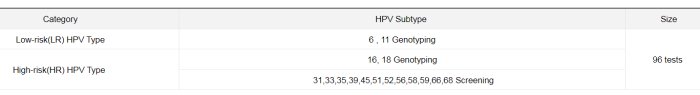 - Consisting of only one tube, and available for HPV screening test can detect 14 high risks and 2 low risks of pathogens.