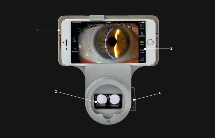 All controls at your fingertips in heads-up display. App specifically designed for anterior segment imaging with patient demographics. Speed of acquisition, integration to network and education for patients. Unique “intra-optics” beam-splitter/adapter/mount. Accommodates most “parallel style” slit lamps. Harnesses the power of Apple® with its exclusive HDR, “Focus Pixel” technology & more!