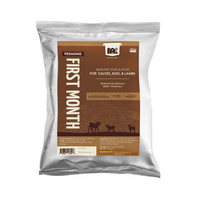 Redmond First Month is a highly effective immune stimulator that can cut death losses, treat scours, reduce medical costs, and restore the health of your herd's next generation.