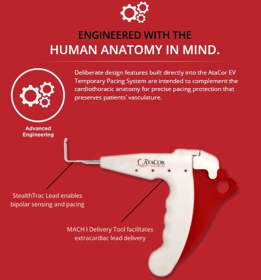 In addition to streamlining delivery of temporary pacing, the AtaCor EV Temporary Pacing System’s extravascular implantation is designed to remove bedrest restrictions, speeding patient recovery and shortening hospital length-of-stay: