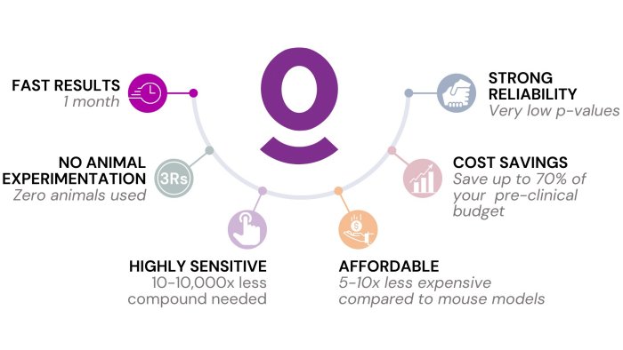 - High sensitivity: requires thousands of times less test compound than classical preclinical models