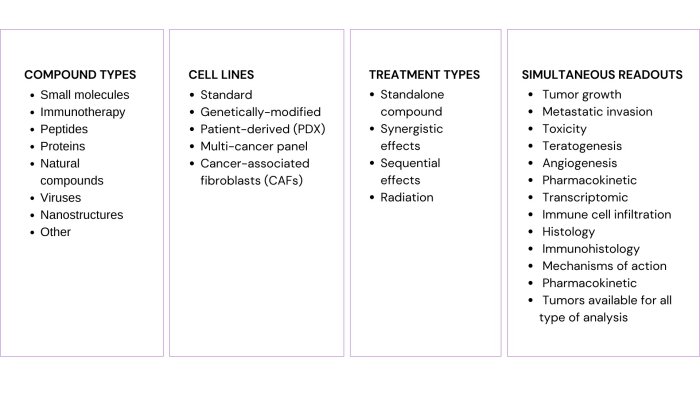 During this 10-day period, we can treat the embryo with experimental, such as immuno-oncology agents, small molecules, antibodies, peptides. We can then compare their effects with control and reference molecules.