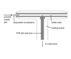 IONICON BET - setupThe test subject exhales through a tube and the PTR-MS draws a constant flow of sample gas through a connected capillary (see figure). The IONICON Buffered End-Tidal (BET) breath sampler has many advantages to facilitate and optimize real-time breath gas analysis. The BET sampler is compliant with medical device directives and is certified for clinical breath analysis with any of IONICONs PTR-MS instruments.