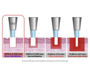 Also referred to as “Cold Ablation,” LOTUS III’s Ultra-Short Pulse Mode (USP) performs deep ablations utilizing a 40µs pulse duration minimizing heat damage to tissue by accurately controlling thermal energy. This results in less pain and undesired side effects. Cold Ablation can also be used for rhytid reduction and highlights the flexibility LOTUS III provides clinicians to tailor treatments by delivering optimal energy where it is needed. This flexibility expands clinical treatment offerings.