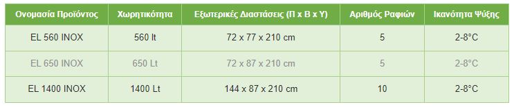 Constructed from stainless steel. Insulation from eco-friendly 6cm polyurethane. Floor with hygienic corners. Adjustable shelves with plastic coating. Spring tension stainless steel doors with triple tempered glass. Built in locks. Compressor: ½ hp. Power: 650W. Cooling: Forced. Auto defrost. Internal lighting. Electrical thermostat (+ – 2oC). Low-high alarm with buzzer. Can be fitted with stainless steel door without glass.